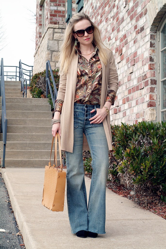 Previous Image Next Image Flared-Jeans-Ralph-Lauren-multi-color-shirt-beige-cardigan-black-ankle-boots-2